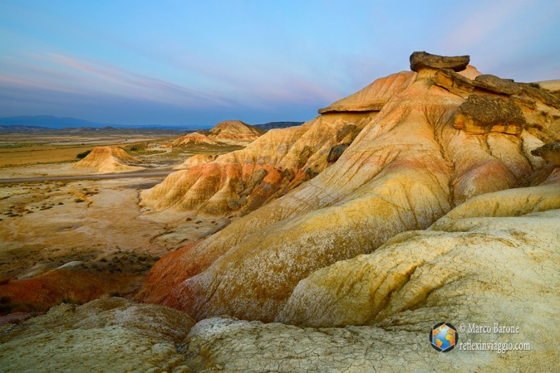 Gli splendidi colori di Bardenas Reales all’alba. Nikon D800, Tokina 16-28, treppiede, 16mm, 2s, f18