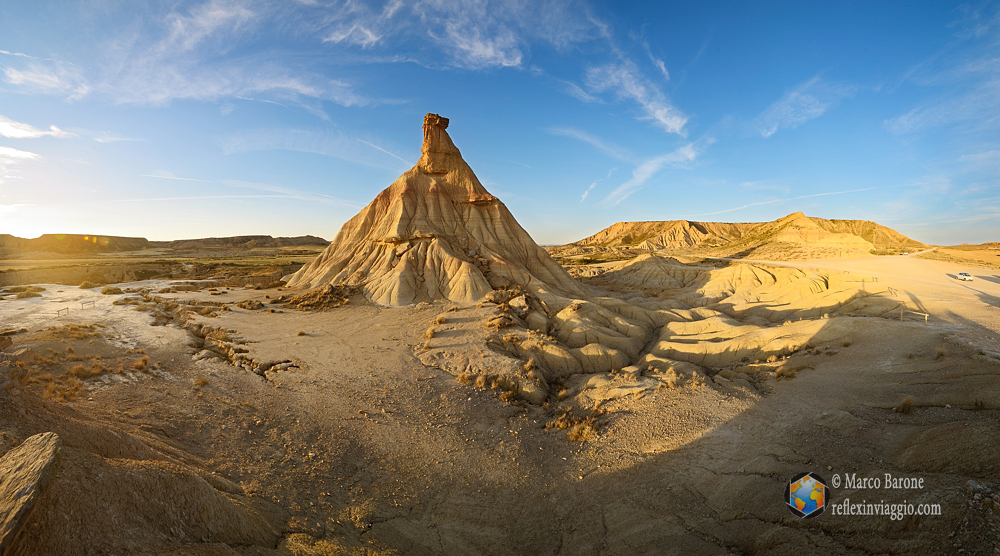 Vista panoramica del Castildetierra, Bardenas Reales, Spagna, Nikon D800, Tokina 16-28, treppiede, 5 scatti verticali